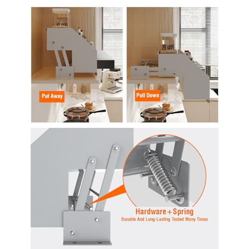 - Intimate design: The wall bracket is thick enough to avoid face frame columns and most types of hinges. The pull-down cabinet pull-down design also enables this shelf to support hanging installation,sliding doors,upward sliding doors,and double doors.
