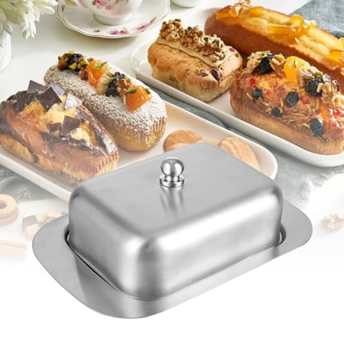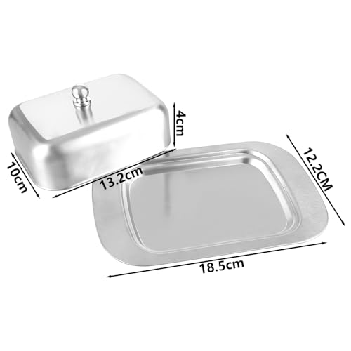 ASelected 18.5X12.2X6 Cm Stainless Steel Butter Dish with Lid Butter Holder Airtight Cheese Dish Butter Plate with Lid Kitchen Dinnerware