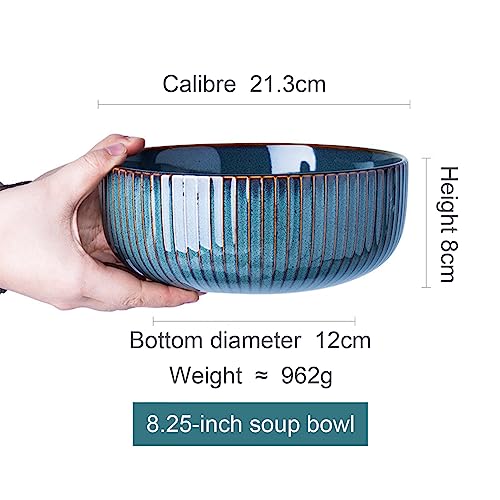 AstraLoom Ceramic Salad Bowl – 1800ml/64oz Handmade Stackable Large Bowl for Fruit, Pasta, Soup, Diameter 21.3cm/8.25in, Microwave & Dishwasher Safe (Blue)