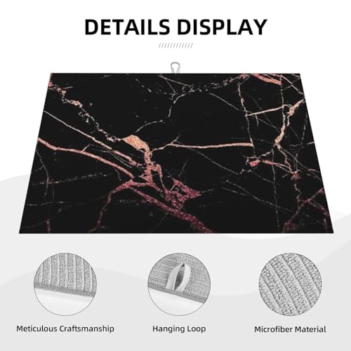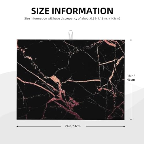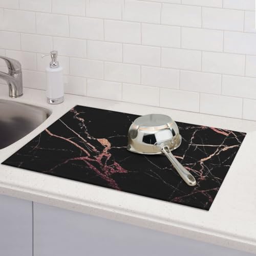 AUGUSTRUSH Microfiber Dish Drying Mat for Kitchen Counter 61×46 Cm, Black Rose Gold Marble Draining Mat, Quick Dry Coffee Machine Mat, Absorbent Foldable Sink Mat, Large Dish Drying Pad, Washable