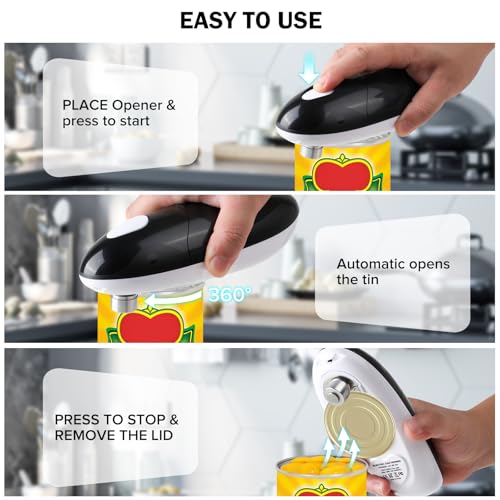 Automatic Electric Can Opener, Battery Operated One-Touch Hands-Free Smooth Edge Opener for Kitchen, Seniors, and Arthritis Users