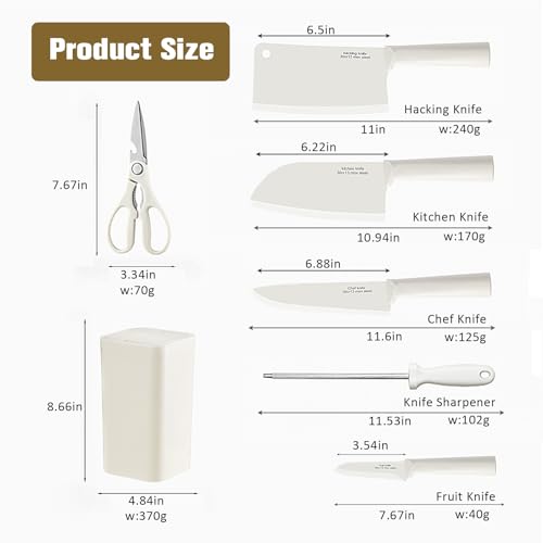 AVEKI Kitchen Knife Block Set, 7 PCS Stainless Steel Knives Set for Kitchen with Sharp Blade, Professional Chef Block Set with Ergonomic Non-slip Handle, Ideal for House Warming Gift (White)