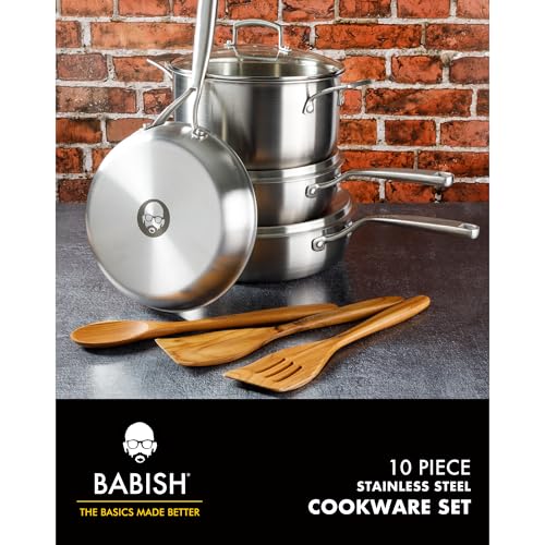 Babish 10 Piece Professional Tri Ply Non Toxic Pots and Pans Cookware Set