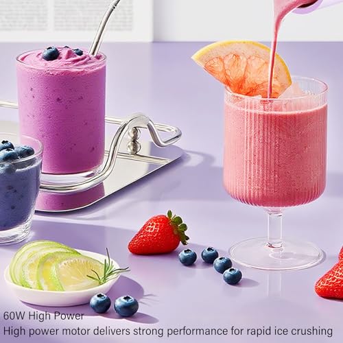 - [Powerful Blending Performance] Our portable juicer cup features 20 stainless steel blades rotating at 21000 rpm with a 60w output. it effortlessly crushes ice and blends fruits vegetables and other ingredients into smooth delicious beverages in seconds. perfect for making shakes and juices with minimal effort.