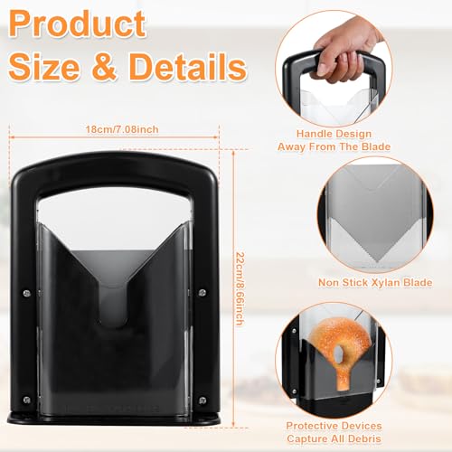 • đŸ©ă€Effortless Cleaning】The simple and effective design of the bagel slicer avoids crumbs and keeps countertops clean and tidy, making it effortless to clean dirt and rinse with water. It is dishwasher safe (handle section only).