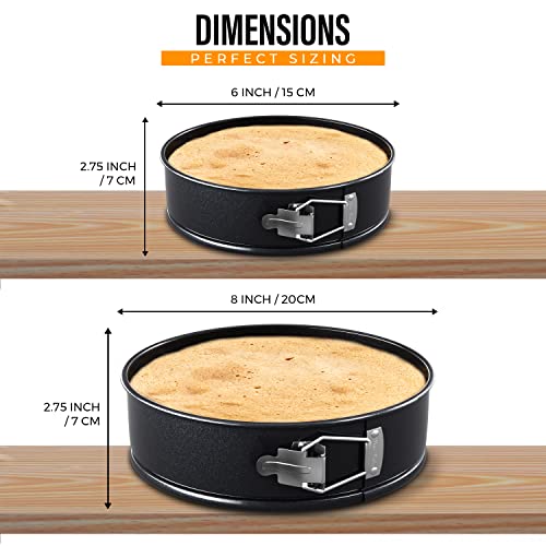 BakeValley Cake Tins for Baking – 2Pcs Round Cake Tin Set – 6 & 8 Inch Cake Tin, 7cm Deep with Parchment Papers Precut for Each Size – Non-Stick Coating & Leak-Proof – Ideal for Baking Cheesecakes