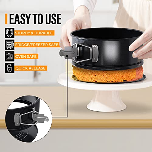 - Springform Buckle: These round cake tins have a detachable base that makes cleanup a breeze, and the easy-release buckle ensures that your cake comes out flawless every time without ruining your masterpiece. Plus, it’s dishwasher-safe for your comfort