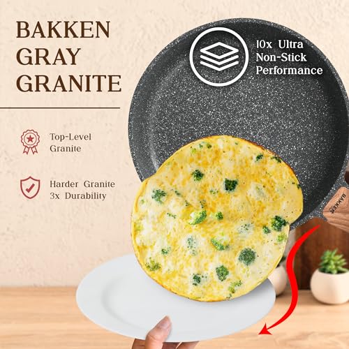 - DURABILITY AND COMFORT: At Bakken-swiss, we design our products to make them comfortable to use. You can move the pots around easily thanks to the cool-touch and form-fitting handle grips. The transparent tempered glass lids allow you to keep an eye on your dishes without losing heat and flavor. We also focus on durability by choosing a long-lasting granite coating.