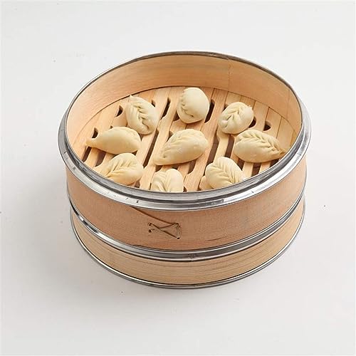 Bamboo Steamer 2 Tier 1 Cover Natural Bamboo Steamer Fish Rice Vegetable Snack Basket Set Dumpling Steamer Steam Pot 25cm, Chinese Kitchen Tools