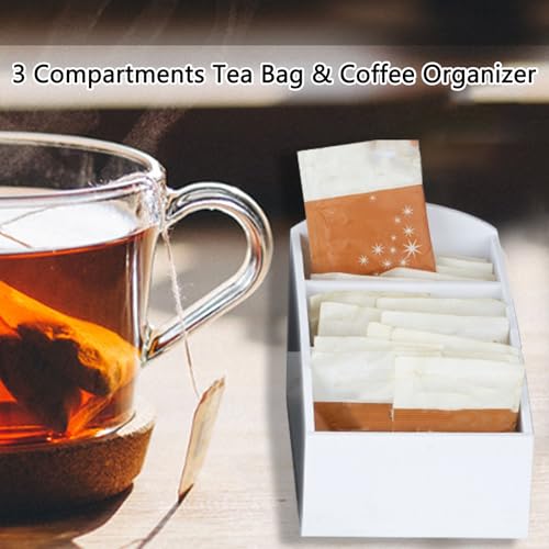 The tea and coffee station organizer has three compartments, making it easy to neatly organize and place all your tea bags, sugar bags, coffee in the kitchen, office or bar for easy access.