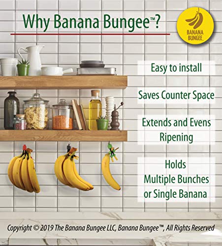 - DURABLE, RELIABLE, & LONG-LASTING: Unlike others, our unique banana hanger stand alternative lets you store one bunch, two bunches, or more. It might sound like a riddle, but it’s no joke. The Banana Bungee is crafted from premium materials for longevity, durability, and reliability.