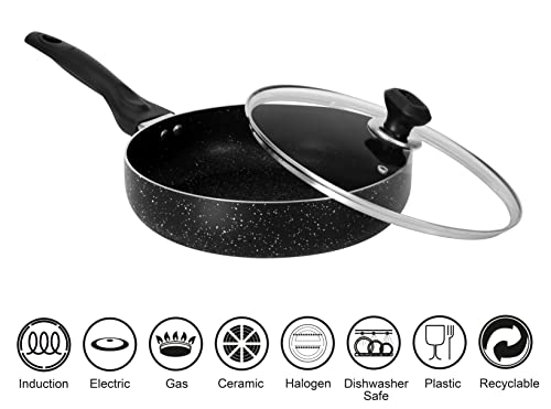 - 💚 NON STICK COATING: The Bartan Classic Frying Pan with glass lid features a 2 layer non stick marble coating which significantly reduces the use of oil and helps with lower-fat healthy cooking.
