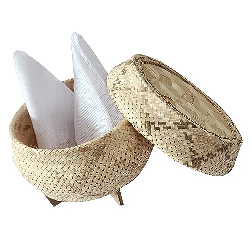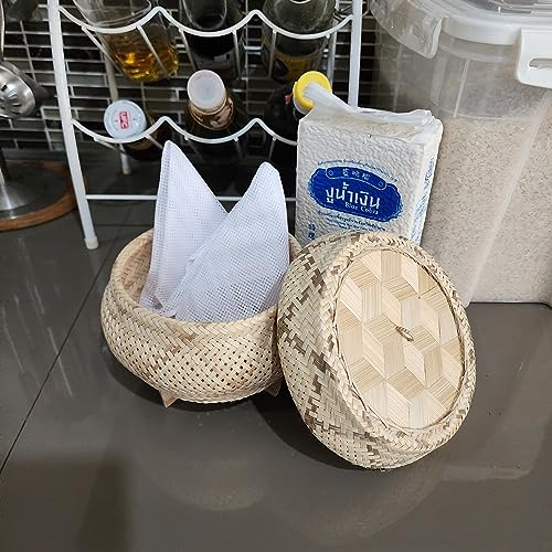 Basket Bamboo Wickerwork Thai Traditional Rice Sticky Steamer with Lid Sticky Rice Cooker Home Free Cloth 2 Pcs.Professional