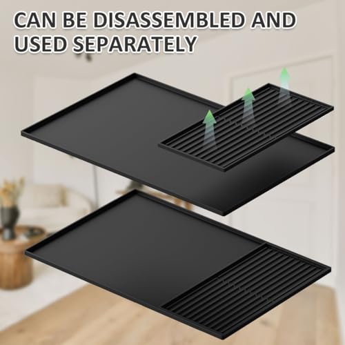 【Removable & Stackable Design】Large silicone mat under coffee machine 40.5x61cm, draining mat 19x40cm, mobile drain tray for easier draining, feel free to stack them on top of each other or use them separately.