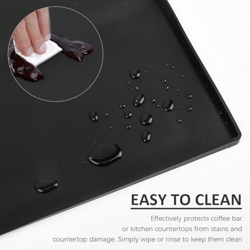 - 【Spill-Proof & Easy to Clean】The silicone coffee mat is designed with a 0.44-inch raised edge to effectively contain spills and prevent leaks, protecting your coffee bar countertop. The smooth silicone surface is easy to clean. Just wipe with a damp cloth or rinse under running water and you can use it again.