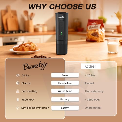 - Ultra-Light & Compact: At just 1.4 lbs and 2.8 x 2.8 x 9.1 inches, Beanztrip portable espresso maker easily fits in a backpack and fits car cup holders effortlessly, perfect for travel, camping, or office use—espresso anytime, anywhere!