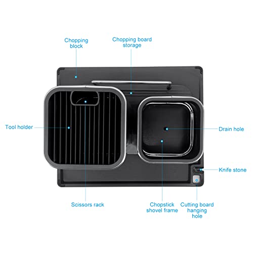 • 【Wide application】Our knife holder has a large capacity, which can hold kitchen utensils such as knives, kitchen scissors, spatula, etc. It also includes a cutting board, which contains a sharpening stone, which is easy to use and reliable.