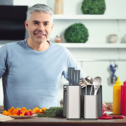 • 【Premium Material】Stainless steel housing and black plastic drain pads add weight and look aesthetically pleasing, while compared to ordinary stainless steel knife holders, our knife holders have a non-stick fingerprint smudge-proof layer to keep The appearance is long-lasting bright and reliable.