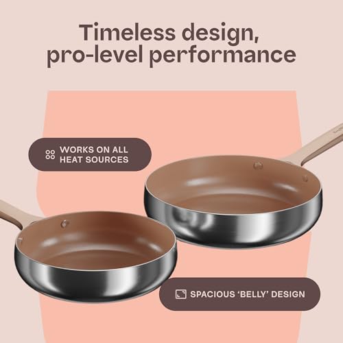 BergHOFF Home Frying Pan Set – 2 pcs – Non-Stick Pans Without PFAS – Coated Stainless Steel pan Set – Universal Pans for All stovetops – Rose Gold