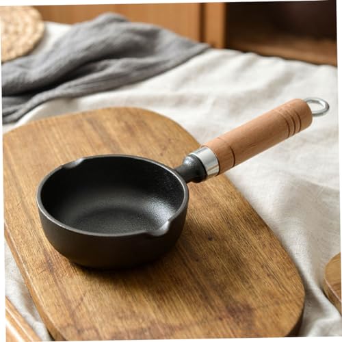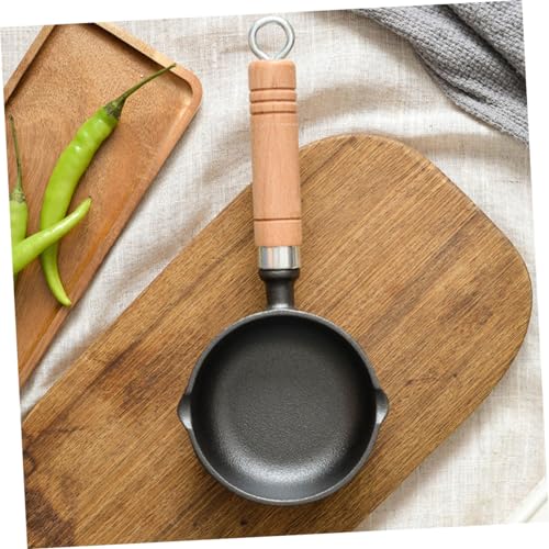 BESTonZON Small Cast Iron Pan Versatile Kitchen Tool Clean Wood Handle for Cooking Butter Warmer