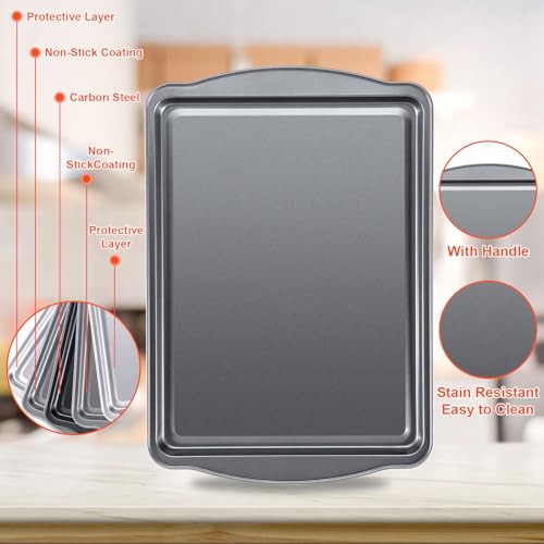 - 【Versatile Usage】This non stick baking trays is extremely versatile and a great helper in your kitchen. Whether it's baking delicate pastries, doing daily cooking, or roasting delicious chicken and fresh vegetables, it can handle all these tasks with ease. One baking sheets meets various cooking needs. With it, you can enjoy convenient and efficient cooking time.