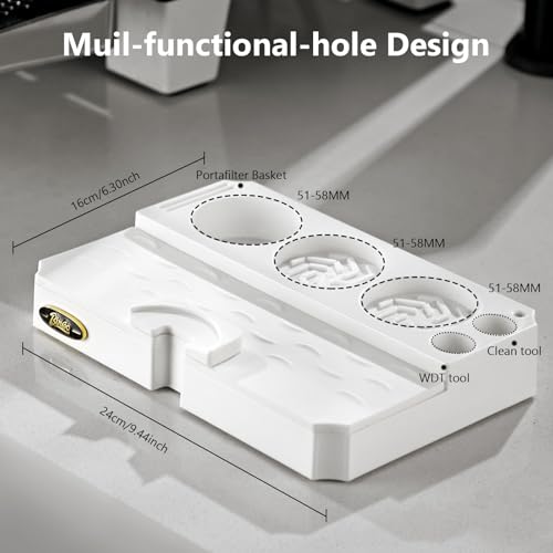 - Wide Compatibility: Suitable for coffee tampers ranging from 51-58mm, the multi-hole storage design accommodates various tools. Additionally, it includes a dedicated slot for a secondary water distribution screen, keeping your coffee tools organized.