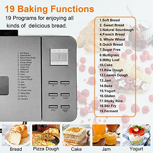 Biolomix Bread Maker 19 in 1 Stainless Steel -Dual Heaters, Large Bread Maker Machines-Gluten-Free, Dough Maker, Jam, Nut Dispenser (BM013)