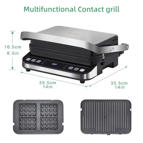 BioloMix Grill Machine Health Grill,3 in 1 Panini Press Waffle Maker with Smart LED Display, 180°Adjustable Design 4 Non Stick Plates (BCG02D-4 non-stick grill plates)