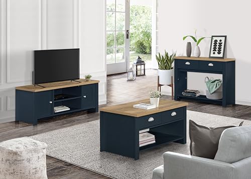 Birlea Coffee Table Blue & Oak Highgate 2 Drawer Navy Farmhouse Shabby Chic