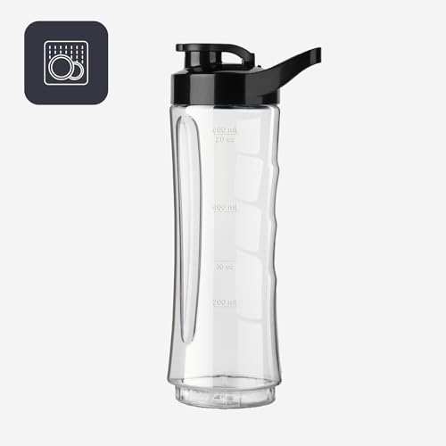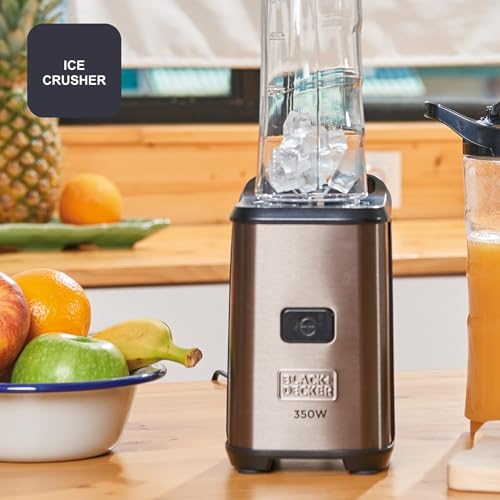 BLACK+DECKER BXJBA350E – Mini Blender 350W, Smoothie Blender and Milkshake with 2 x 600ml BPA-Free Bottles, Airtight Lid, 4 Stainless Steel Blender, Black and Stainless Steel Anti-Fingerprint