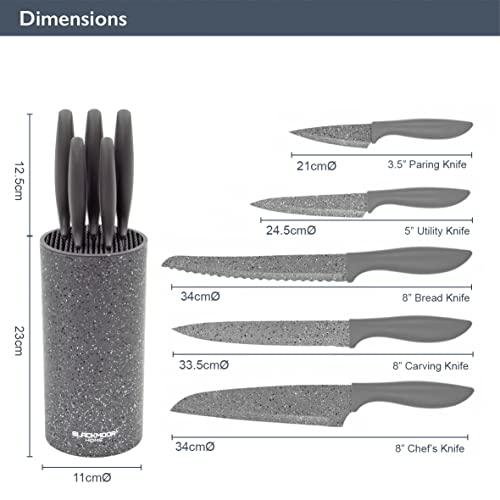 Size | Blackmoor Home 66919 5 Piece Knife Set with Block, Grey Coloured Marble Coated Stainless Steel, Easy Clean, Modern & Stylish Kitchen Accessory |