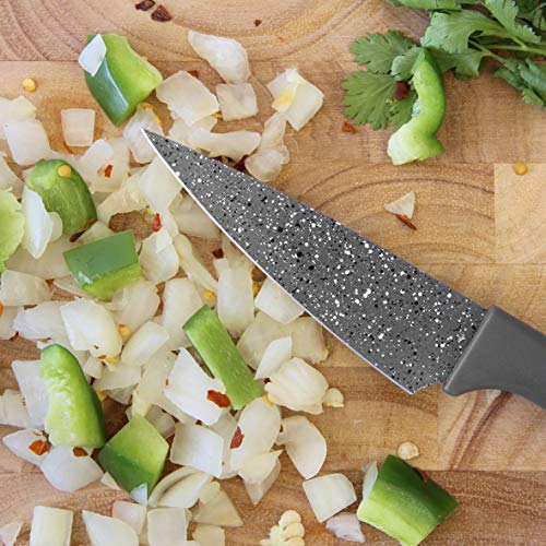 - NON-STICK MARBLE COATING – The marble coating on these knives makes them non-stick, which is ideal for meal preparation, as the foods will fall straight onto the chopping board, and ready to be placed in the pan. The knives are all manufactured from stainless steel, and feature lightweight and ergonomic handles for added comfort and control.