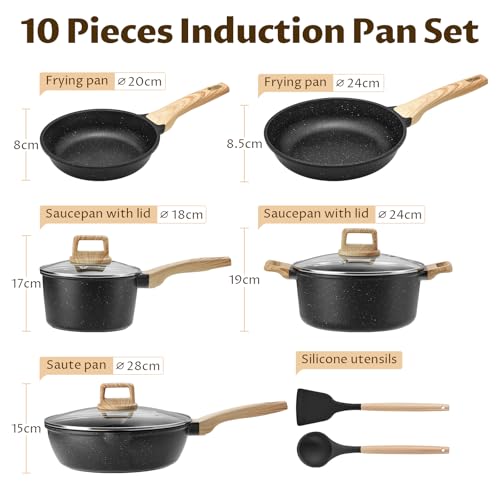 BLAZANT Induction Pots Set, 10-Piece Granite Cooking Pot Set, Non-Stick Pan Set with Lid, Aluminium Pots and Pans Set for All Types of Cookers, PFAS-Free
