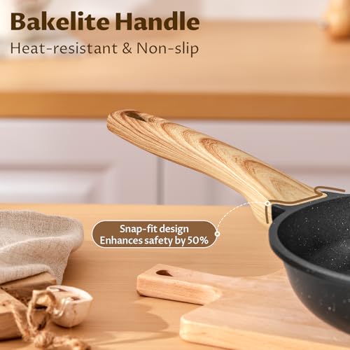 - Healthy cooking with non-stick technology: Innovative granite coating with excellent non-stick performance – easy frying and flipping, without large amounts of oil and salt. The material is food-grade and 100% free from PFOA, PFOS, lead and cadmium. The non-stick surface design can be easily cleaned with just a rinse of water, ensuring a relaxed, healthy and delicious experience for you to enjoy