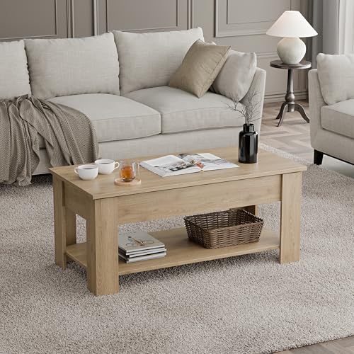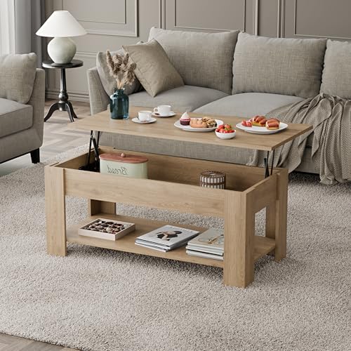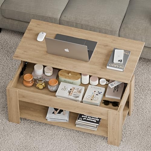 - [ LIFT TOP DESIGN ] This lift-up Coffee Table Top Can Be Lifted Effortlessly. The high-quality metal mechanism enables the tabletop to be lifted up or lowered down easily and without noise.
