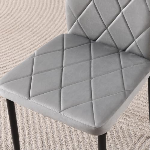 BonChoice Grey Velvet Dining Chairs Set of 2 High Back with Metal Legs for Dining Area Kitchen, Side Chairs for Restaurant Office Gathering Home/Commercial (2, Grey Argyle Velvet)