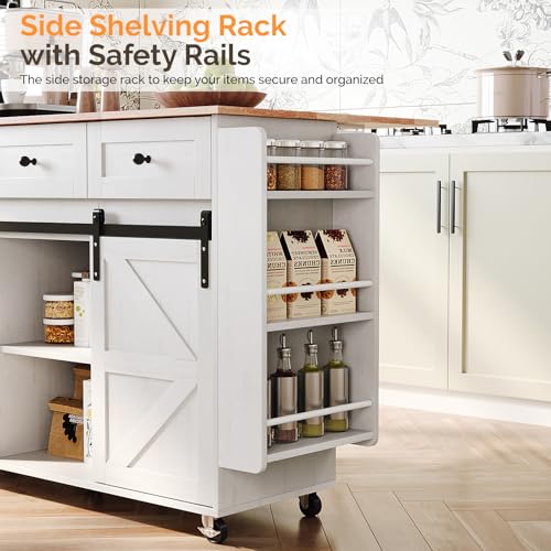 - Modern Farmhouse Design: Crafted in a clean white finish with charming barn-style doors, each door features a sleek black metal handle. This kitchen island with storage unit combines rustic character with contemporary style to enhance any kitchen, dining, or living space.