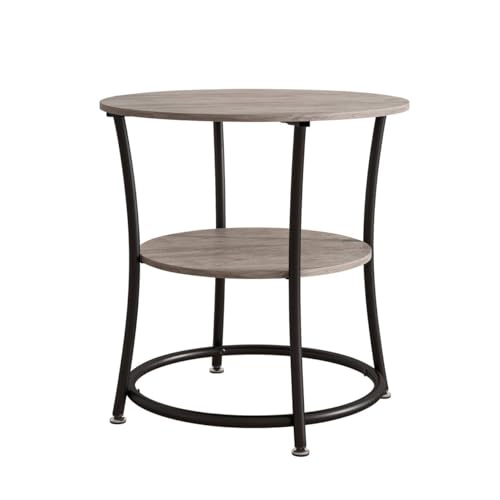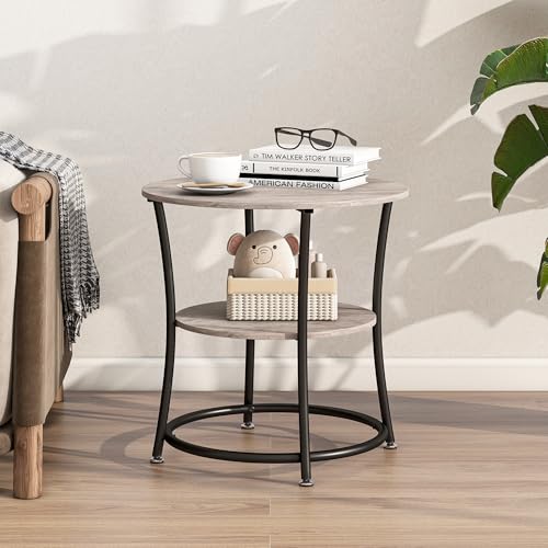 BORPHOM Round Coffee Table,Sofa Side Table,End Table with Metal Frame,for Small Space,Living Room,Bedroom, 2-Tier Circle Coffee Table with Storage Shelves,Grey