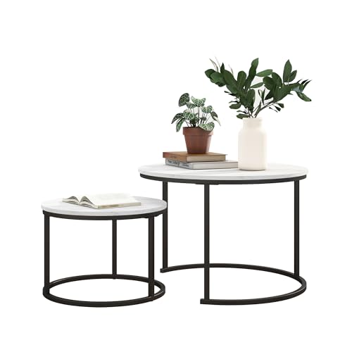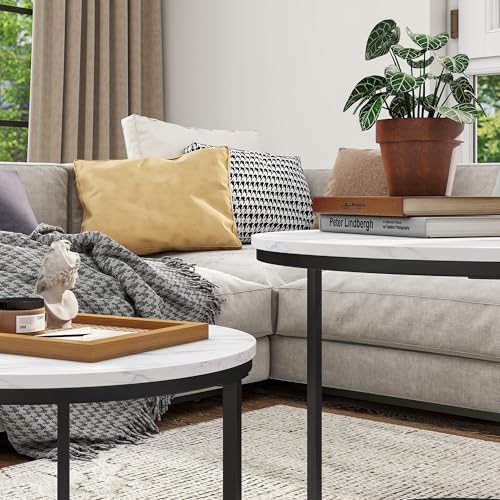 BORPHOM Round Coffee Table,Set of 2 Side Table,White Marble Coffee Tables for Living Room/Bedroom/Small Space,Nesting Tables with Metal Frame,Easy Assembly