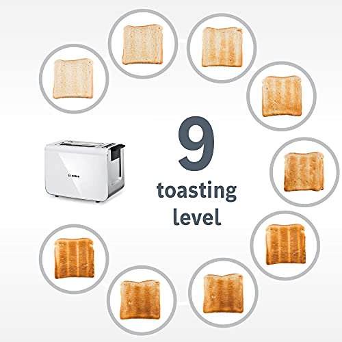 Bosch Styline Compact TAT8611NGB 2 Slot Stainless Steel Toaster with 9 browning levels including defrost and reheat – White