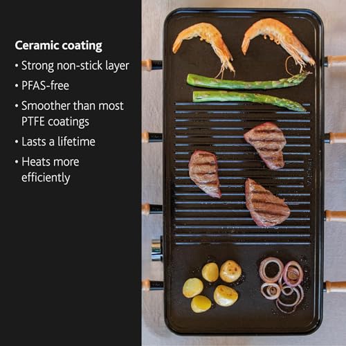 - PFAS-FREE CERAMIC GRILL PLATE: The reversible ceramic-coated grill plate heats quickly, cooks evenly, and contains no PFAS – better for you and the environment.