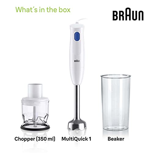Braun MultiQuick 1 Hand Mixer MQ10.201MWH, Lightweight Mixer with EasyTwist Technology, One Speed, 350ml Chopper and 600ml Beaker Included, 450W, White