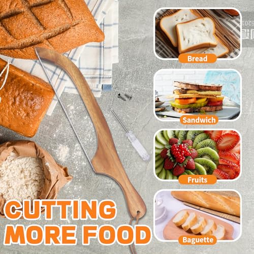 - 【Ergonomic Wooden Handle】 Bread bow saw cutter combines a wooden handle with a bow design, ergonomic design, comfortable to hold and grip, which can reduce hand fatigue and easy to use for a long time. Whether it is cutting sourdough bread or delicate cakes, every cut is accurate and labor-saving.