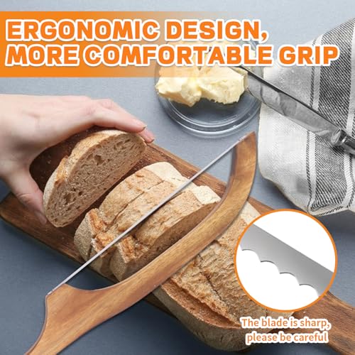 - 【A Great Gift for Baker】 Wooden bread knife contains 1 bread knife, 1 screwdriver, 2 screws, 1 blade protector and 1 fabric storage bag, which can be used by both right and left handers. Perfect for home baking and kitchen enthusiasts. It makes a unique gift for family and friends on birthdays, weddings and housewarming parties.