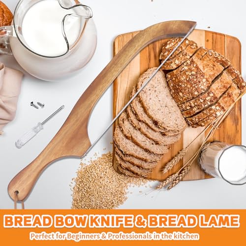 - 【NOT JUST FOR BREAD】 Sourdough bow saw features a 10.6-inch double-sided serrated edge, which are very sharp and can easily grips and slice through foods' crust or skin without tearing the soft inside. It is ideal for slicing sourdough bread, bagels, baguettes, lof, cheese, fruits, cakes, vegetables nad more.