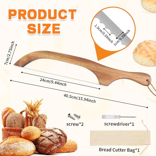 Bread Slicer for Homemade Bread, 16’’ Wooden Bread Bow Saw Cutter Sourdough Bread Knife Stainless Steel Serrated Bread Cutter Sourdough Slicer for Homemade Braed Sourdough Bagels