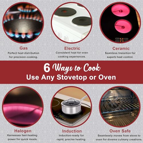 - USE ANY STOVETOP – Compatible with induction, gas, electric, halogen, and ceramic stovetops. It's also oven safe up to 500°F. Always use heat insulated protection when handling the pan in and out of the oven.