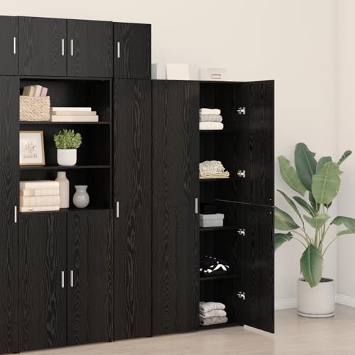 Brokky 3365596 Highboard Black Oak 40×42.5×185 cm Engineered Wood Wooden Standing Side Cabinet Unit for Living Room Kitchen Hallway