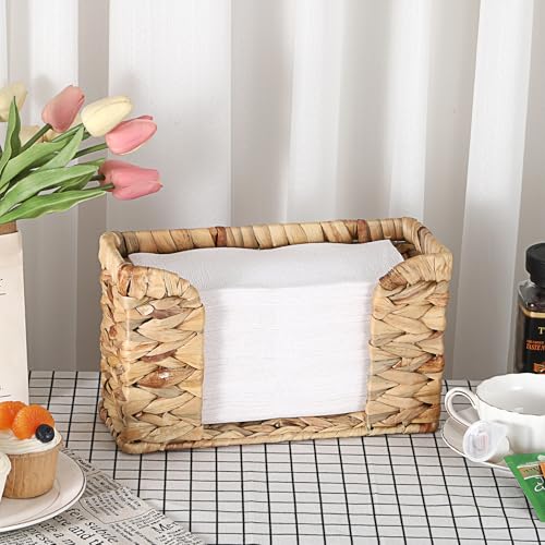 BSTKEY Natural Water Hyacinth Paper Towel Holder, Hand Woven Folded Tissue Paper Dispenser Guest Towel Dispenser Household Countertop Napkin Holder Paper Holder