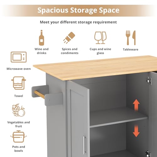 BTM Mobile Kitchen Island on Wheels, Rolling Storage Trolley with Foldable Worktop Kitchen Storage Dining Room Cabinet with Drawers, Grey